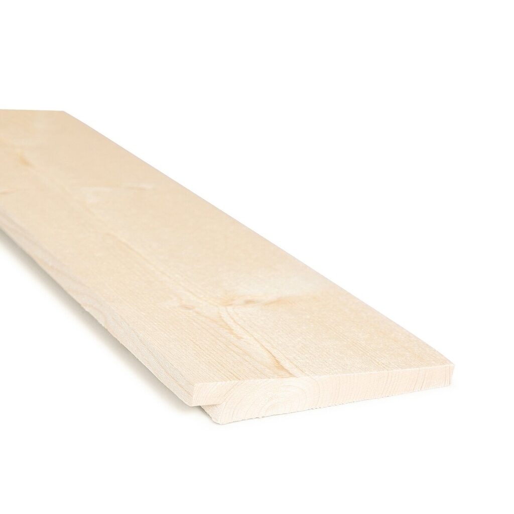Skråskåret enkelfals liggende kledning. Også kalt Weatherboard. Ikke endepløyd. Kledning bør overflatebehandles før montering.